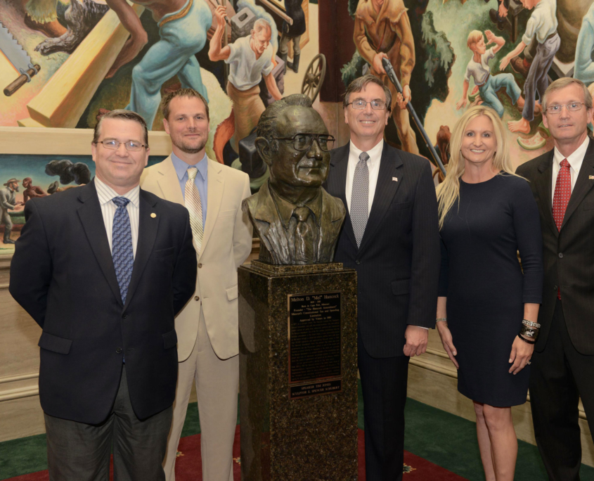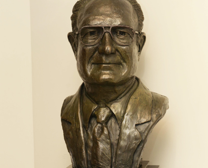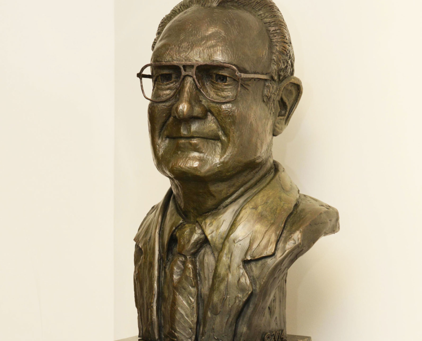 Melton “Mel” Hancock, was elected to the United States House of Representatives in 1988. The fourth of our sculptures for the Missouri State Capitol, he was inducted into the Hall of Famous Missourians in 2013. A second casting of the Hancock bust resides in the lobby of Federal Protection in Springfield, Missouri, the company he co-founded.