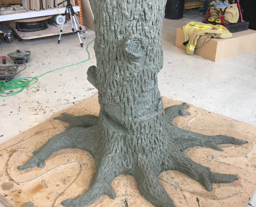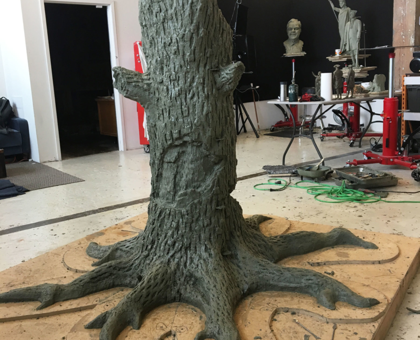 The most complicated, and thus rewarding, part of this sculpture was creating a texture that paid tribute to the real war-torn tree that the Chemical Corps’ logo is based on, while at the same time respecting the materials and limitations of bronze sculpture. The war-torn tree is the central sculpture of the U.S. Army Chemical Corps’ memorial grove at Fort Leonard Wood. It plays a significant role in their ceremonies and we are incredibly honored to have created it.