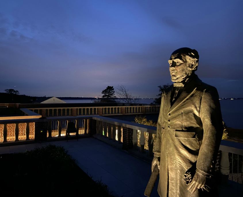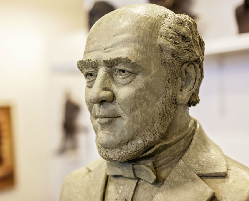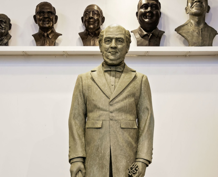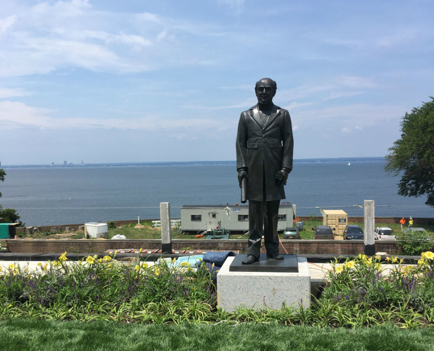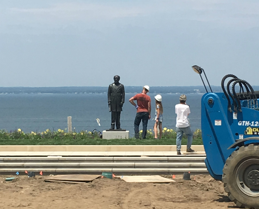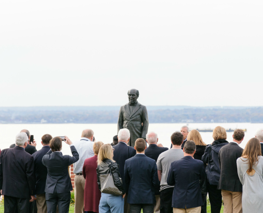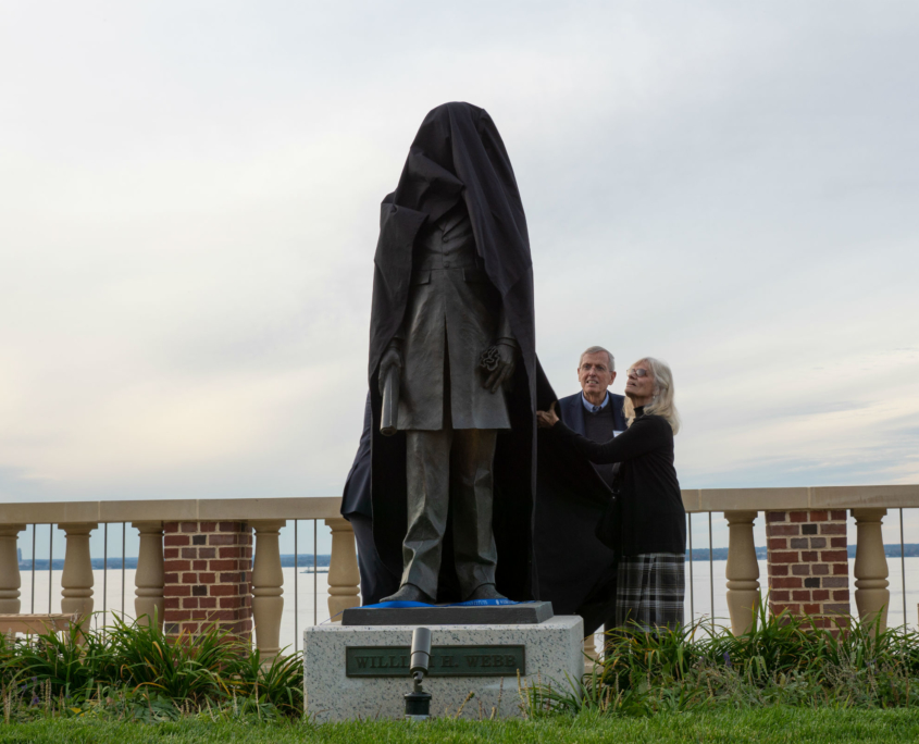 William H. Webb was the owner of one of the largest shipyards in New York in the mid-1800’s.  He was a visionary who understood that his industry was changing from a craft into a science and because of that he founded Webb Institute, a retirement home for old shipbuilders and a school to teach naval architecture and engineering.  Webb Institute is based in what was formerly The Braes, a summer home of Herbert Pratt in Glen Cove, NY on Long Island Sound.  In 2018, Webb Institute began large addition, almost completely below ground so as to not spoil the original setting of the estate.  We were hired to create a monumental statue of William Webb that was to be situated on the green roof on top of the new classrooms. The statue was unveiled in October of 2019 along with the ribbon cutting of the new Couch Academic Center.